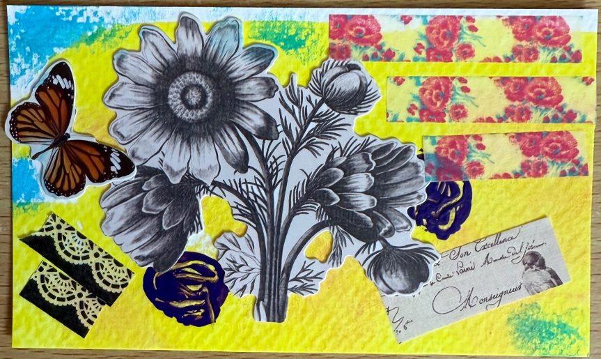 I’m using a mix of collage and painting for creating my art cards. Below are few of them I made this past week.
