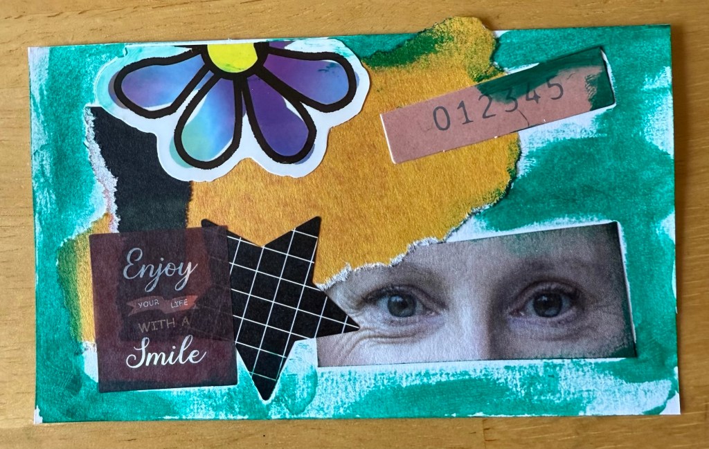 I was posting every day or at the weekend my cards. Around the 50th card, I received a nasty comment “You shouldn’t call it art, gluing images or dumping painting on a piece of paper isn’t art!” I got really upset and stopped posting them, I still keep up making them, here you see the 51st to 75th cards. My cards are one way to express my feelings, a card can take a few minutes to make, others hours or weeks. It’s not easy to transfer our feelings to a piece of paper.