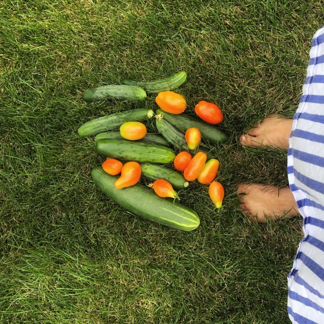 the joy of gardening. i know it’s not easy to start, to work with the soil, to add the tiny seeds, watering and all the waiting. this process started on the spring, and now almost at the end of the summer i have been harvesting delicious cucumbers and tomatoes. i have peppers too, but they are still growing. the art of gardening has taught me many things, as to have more patience, to trust the process, to be more grateful… i’ve been gardening for many years and each year seems that it’s the first year, always something new to learn and appreciate.